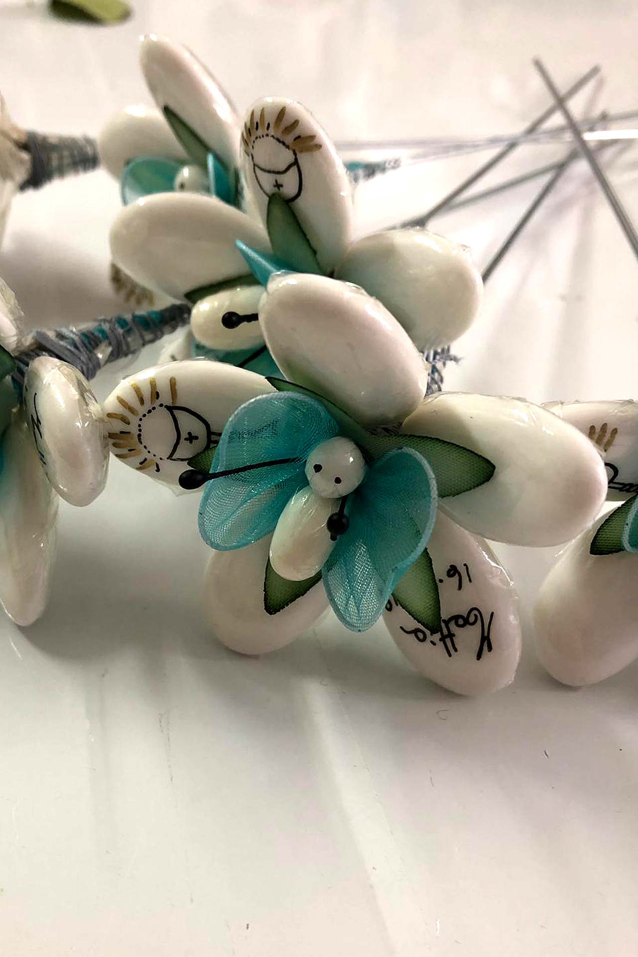 - al centro una farfallina di confetti (pallino di zucchero e cannellino)